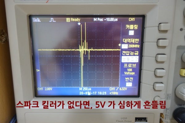 스파크킬러가 없으면 내부 5V 전원에 이런 노이즈가 들어옵니다.