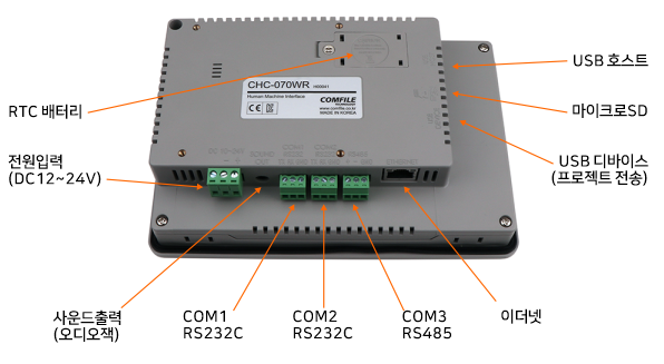 - CHA 시리즈의 경우 HMI실행 데이터는 microSD카드에 저장됩니다. 따라서 CHA시리즈는 반드시 microSD카드가 꼽혀 있어야 동작합니다.