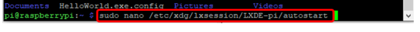 - 2. “sudo nano /etc/xdg/lxsession/LXDE-pi/autostart” 명령으로 실행시킬 파일을 등록합니다. (저장후 종료 : Ctrl+x 후 Y)