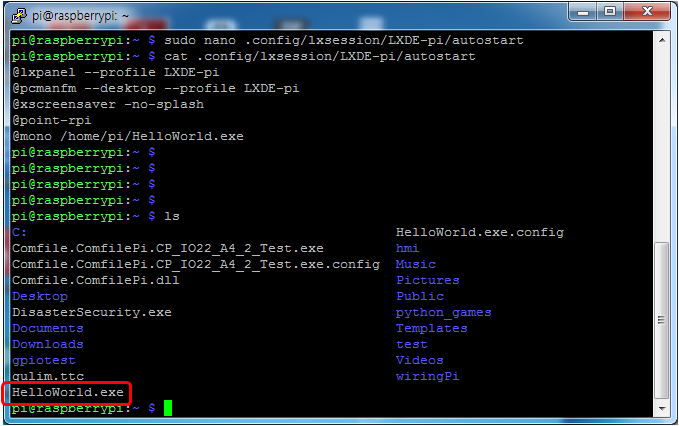 .Net으로 만들어진 실행파일(.exe)을 ComfilePi 전원 On시 자동으로 실행 시키기 위해서는 다음과 같은 방법을 이용하여 Auto-Start기능을 활성해 주어야 합니다.