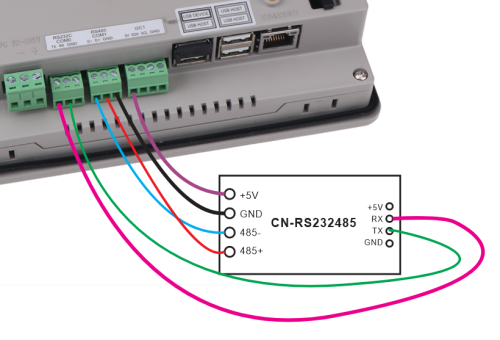 따라서 COM1에 RS485 TO RS232 CONVERTER를 연결해서 COM0 와 결선해주어야 테스트를 진행할 수 있습니다.