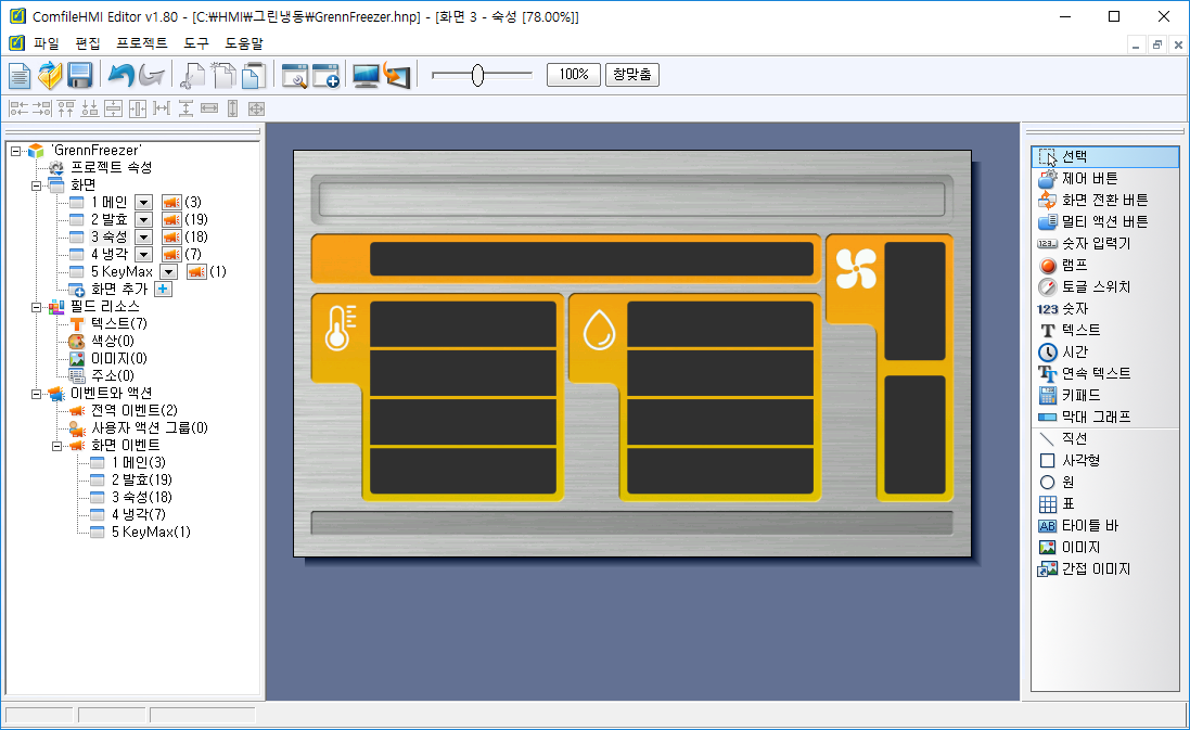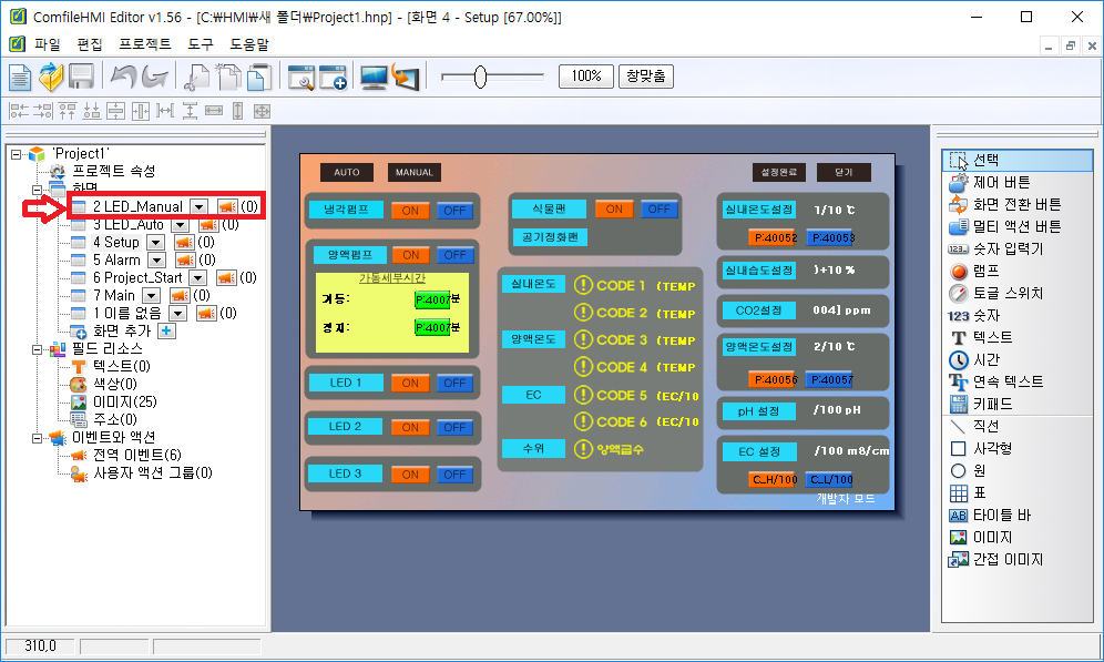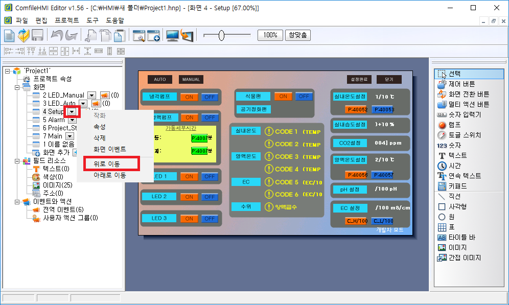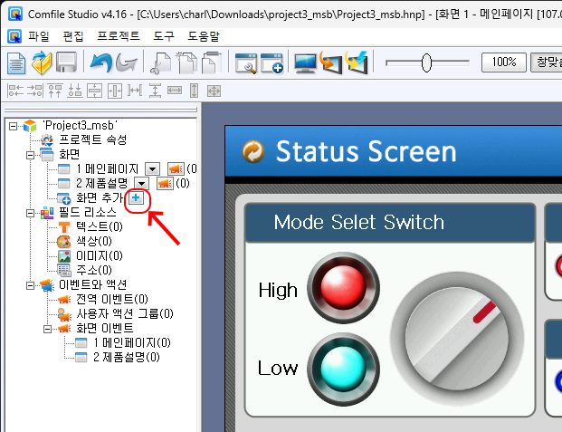화면이 여러 개일 경우, 가장 위에 위치한 화면이 HMI 전원 인가 시 가장 먼저 표시됩니다.