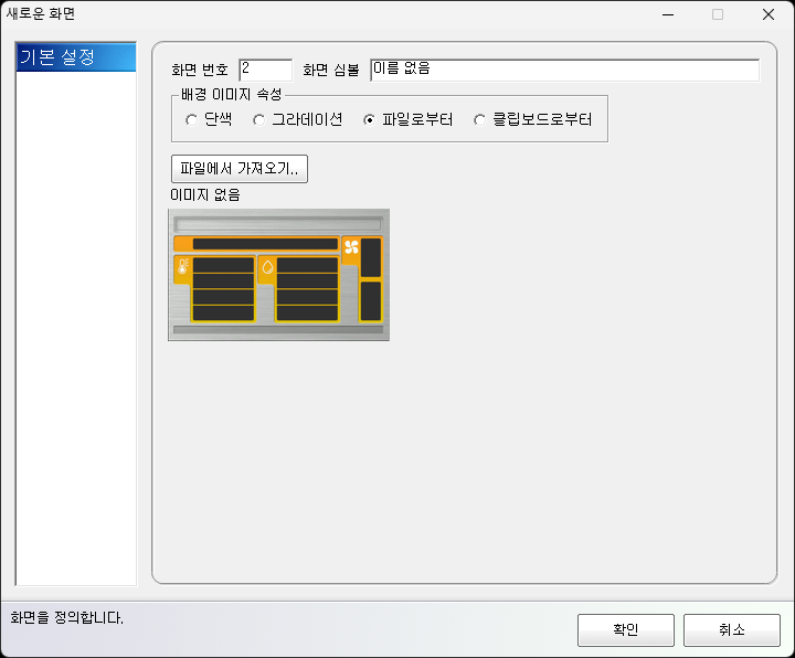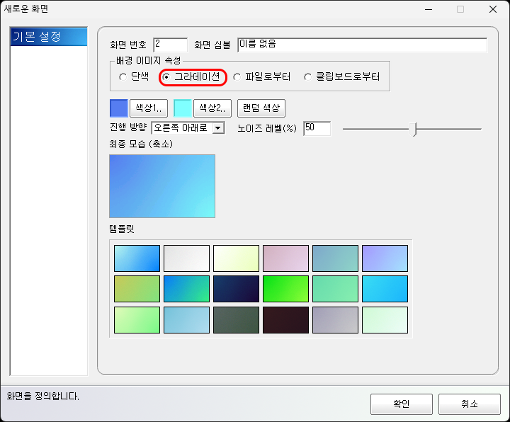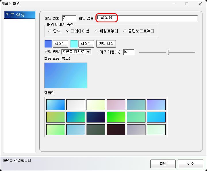 화면 추가 시 화면의 배경을 설정할 수 있는 다이얼로그 박스가 표시됩니다.