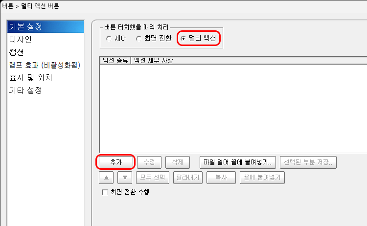 멀티 액션 버튼에서 <스크립트>를 추가합니다.