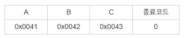 문자열(String)은 유니코드 데이터의 집합이며, 반드시 마지막에 종료코드 0이 포함되어야 합니다.