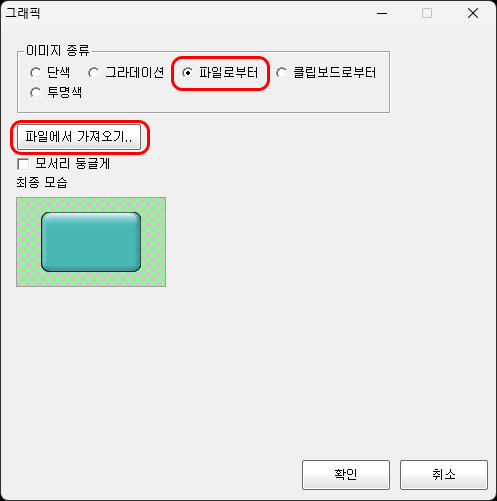 <직접 설정>을 선택하면 이미지 파일을 이용하여 위젯 모양을 변경할 수 있습니다.