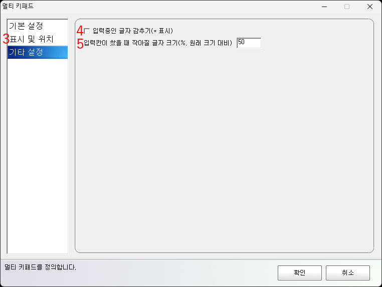 4. 입력 중인 내용을 '*'로 표시하여 감출 수 있습니다.