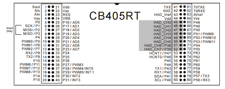 | HADCH0 | 45 | INPUT | 16bit AD CHANNEL 0 |