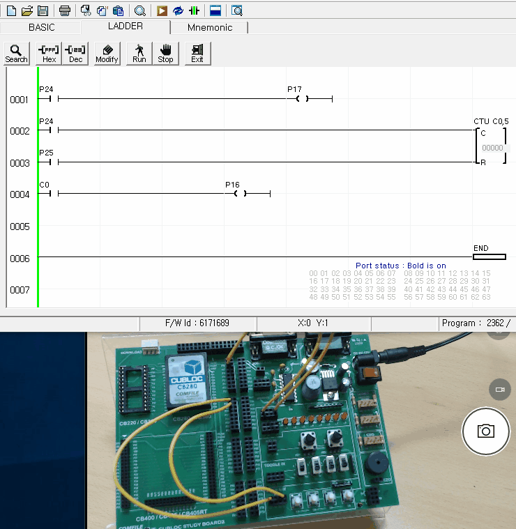 CB280과 CUBLOC STUDY Board 2를 사용해서 위 명령어를 실험해보겠습니다.