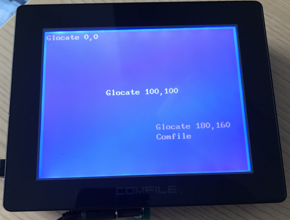 #include "CT18XX" Contrast 550 Font 2,0 Offset 0,0 Glocate 0,0 Gprint "Glocate 0,0" Glocate 100,100 Gprint "Glocate 100,100" Glocate 180,160 Gprint "Glocate 180,160",Cr,"Comfile"