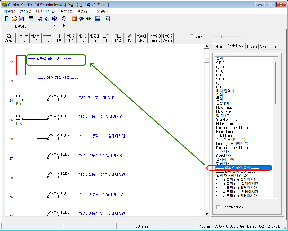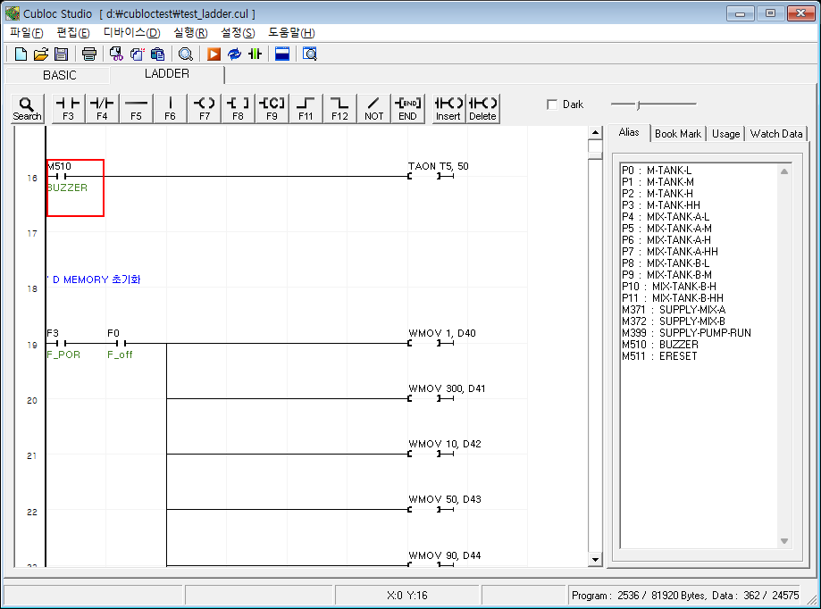 화면 우측에 Alias탭을 누르면 BASIC에서 Alias로 지정한 릴레이/레지스터만 따로 모아서 표시됩니다.