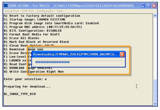 5) OS 이미지가 다운로드 되는 것을 확인 할 수 있으며, 약 1분 정도 기다리면 CUWIN이 부팅 됩니다.