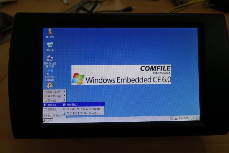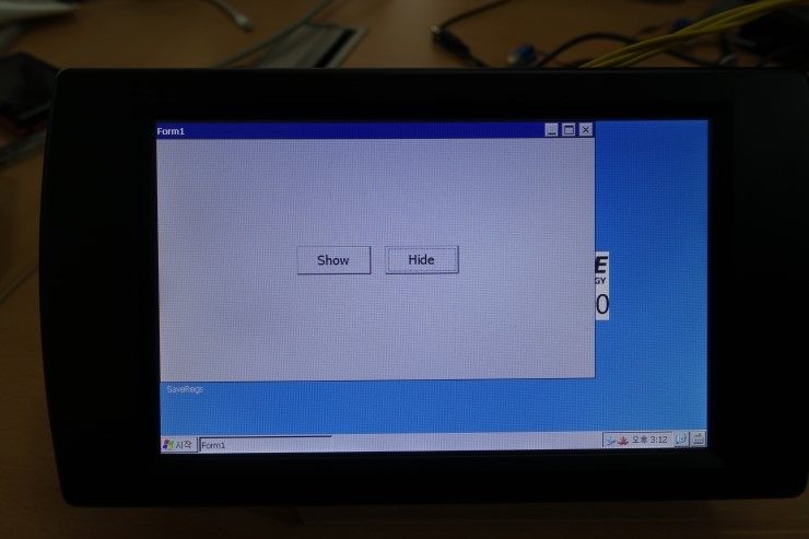 아래 사진처럼 윈도우CE 개발모드에서는 항상 <시작>이 표시된 테스크바가 보입니다. 하단 데스크바를 감추는 세가지 방법이 있습니다.