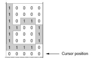 위 그림처럼 5 x 8 캐릭터를 정의하실 수 있습니만, 실제로는 5×7 만 사용하실 수 있습니다. 8번째 줄은 커서가 위치해야되므로, 반드시 비워두시기 바랍니다.