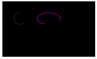# Clear the active layer Clear # Draw green circular arc with a stroke width of 1.0 LineWidth 1.0 Color 00FF00 # Width omitted for circular arc DrawArc 100 100 50 45.0 235.0 # Draw fuchsia elliptical arc with a stroke width of 3.0 LineWidth 3.0 Color FF00FF DrawArc 300 100 100 50 110 270