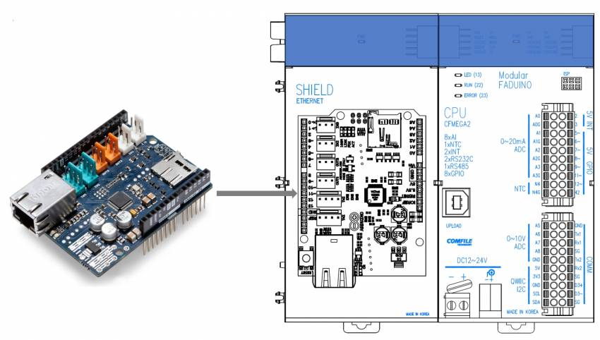 이 모듈은 Arduino Ethernet Shield 2 보드를 장작하여