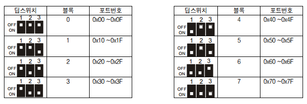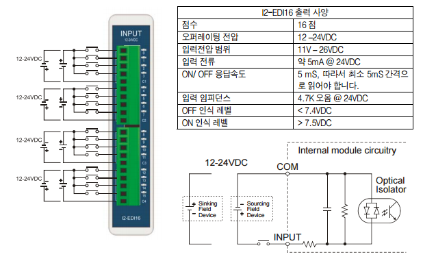 확장 DI 모듈도 양방향 전원을 인식할 수 있는 DC12V~ 24V 입력 모듈입니다. 포트번호는 모듈하단에 있는 딥스위치로 결정합니다. 한 시스템에서 중복된 딥스위치 설정이 없도록 주의하십시오.