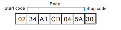 위 그림처럼 통신 패킷이 구성되어 있을 경우, stop code 인 0x30 이 수신되면 이벤트가 발생됩니다. 이벤트 처리 함수에서 수신버퍼에 있는 내용을 모두 읽어서 start code 와 stop code 사이에 있는 본체(Body)를 찾을 수 있습니다.