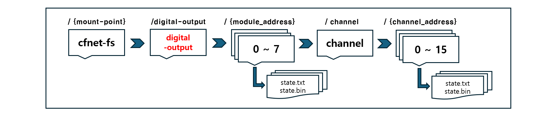 - 각 디지털 출력모듈(CFDO)은 cfnet-fs 마운트 지점 아래에 있는 디렉터리로 표현됩니다.