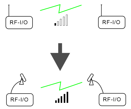 패치안테나 (별매)를 장착하면 송수신 거리가 늘어납니다. 단 방향성이 있습니다. (패치안테나를 서로 시야가 보이는 곳에 마주보도록 설치해야 효과가 있습니다.)