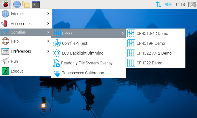 The desktop menu, now has a ComfilePi menu with a number of utilities and example programs to make it easier to use and learn the features of the ComfilePi panel PCs.