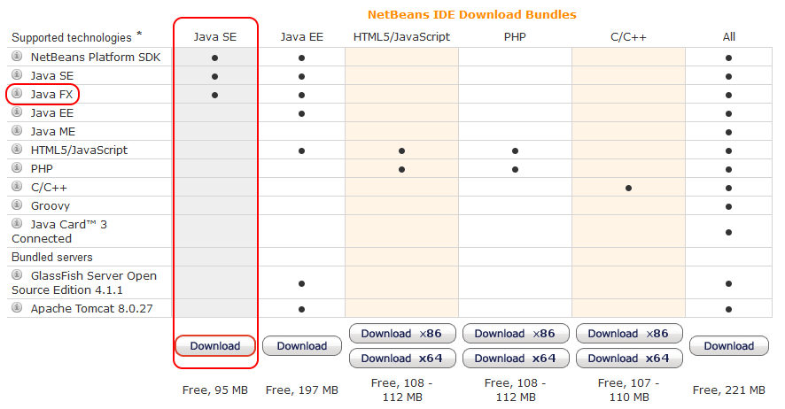 Download the Java SE NetBeans IDE bundle from https://netbeans.org/downloads/