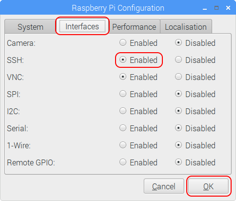 Typically, a remote connection between the Windows PC and the ComfilePi is established via SSH. Be sure the SSH Server is enabled on the Comfile Pi. Enabling the SSH server also enables an SFTP server for copying files.