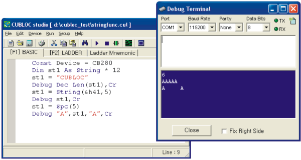 Dim ST1 As String * 12 ST1 = String(&H41,5) Debug ST1 ' AAAAA is printed. ' &H41 is ASCII code for character A.