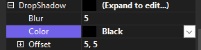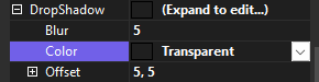 The DropShadow property creates the illusion of a control rising slightly off the surface, and therefore casting a shadow. It can be applied independently to a control's shape and/or text.