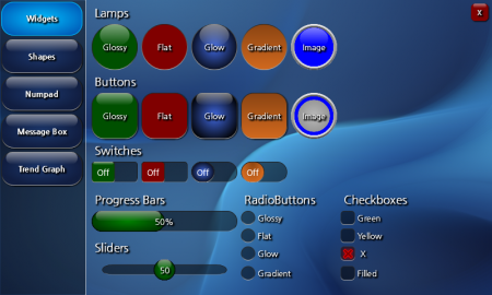 | | jImageLamp | The jImageLamp control is identical to the jLamp control, but uses images in the OnAppearance and OffAppearance properties to describe its appearance. |