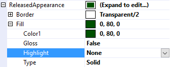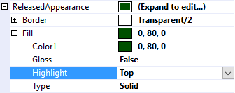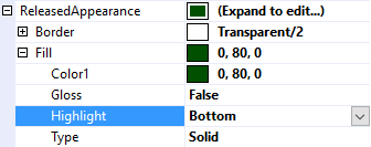 The Highlight property adds the effect of a light reflecting off of the top edge of the control (Top), off the bottom edge of the control (Bottom), or no reflection at all (None). Used creatively it can add the appearance of depth to the control. For example, using Top for a jButton's ReleasedAppearance and Bottom for the jButton's PressedAppearance can create the effect of a button moving inward when pressed.