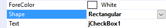 The Shape property can be used to select the overall shape of the checkbox: Rectangular or Round