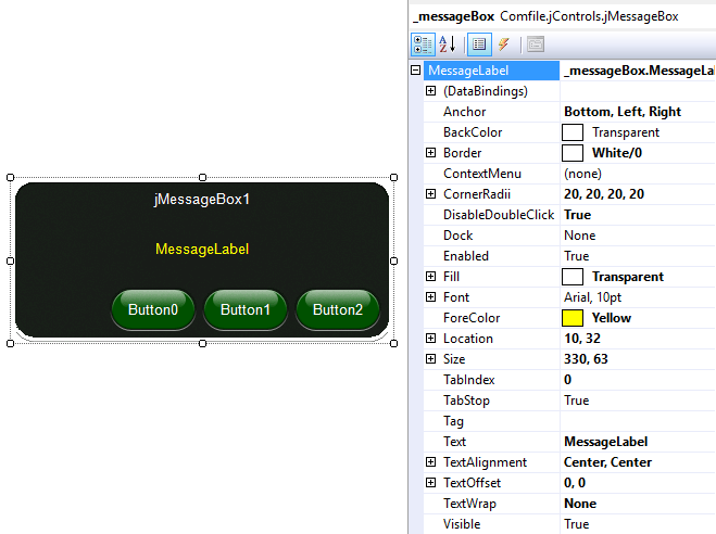 The MessageLabel property exposes the label that displays the message. Like the buttons, it's layout, appearance, and behavior can be customized.