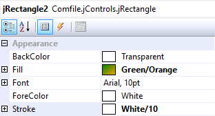 The jRectangle and jRoundedRectangle controls draw a rectangular shape that can be both stroked and filled as described in Fills, Strokes, and Borders.