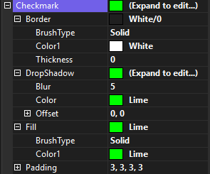 The Padding property adds space between the edges of the check box and the checkmark.