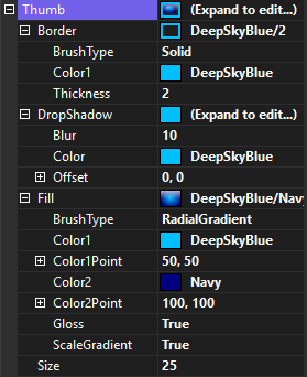 The Thumb property is used to customize the appearance of the handle that the operator will use to move the slider.