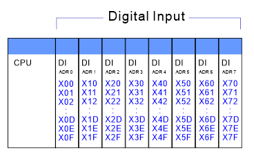 보시는 것처럼 모두 대문자로 구성되어 있습니다. 모든 입출력 모듈이 다 장착된 상태에서의 어드레싱 참조표입니다.