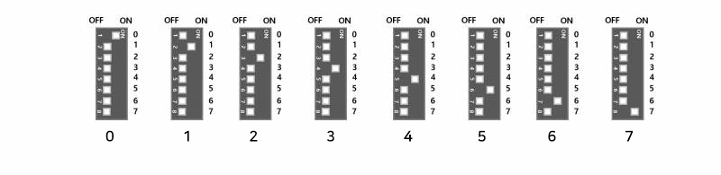 The address setting method is different from other I/O modules: Only one of the DIP switches should be turned ON at any time.