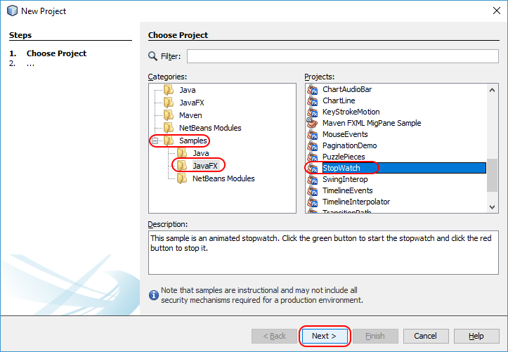 Samples/JavaFX node, choose the