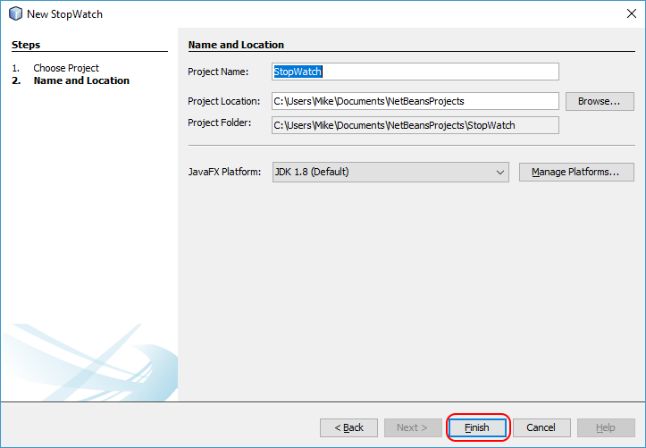 Stopwatch project and press the