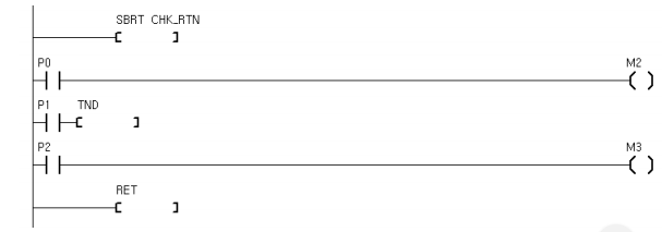 It can also be used to exit from subroutines when a certain condition is met. In the ladder above, when P1 turns ON, the subroutine will be aborted, but the ladder scan will continue.