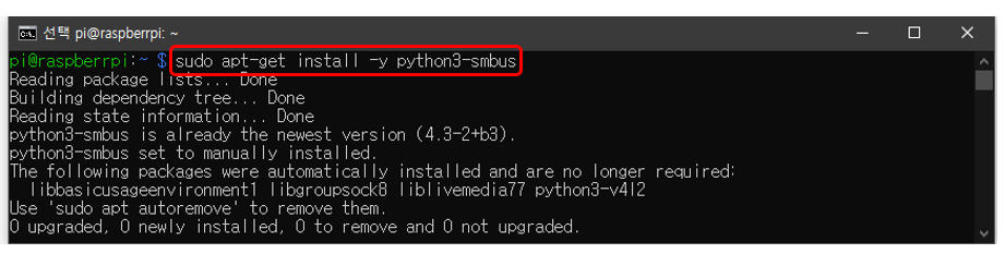 • Install smbus2 library: sudo apt-get install -y python3-smbus