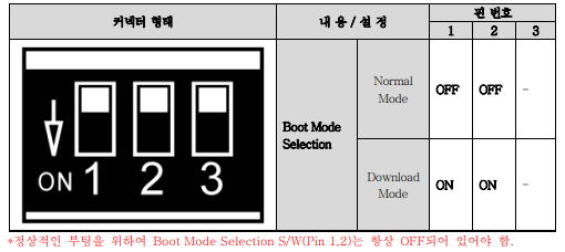 다운로드 할때에만 1,2번 스위치를 On상태로 두십시오.