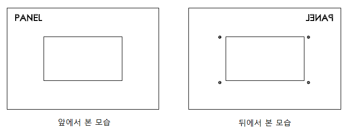 3. 판넬 뒤쪽에서 판넬 지지대에 볼팅을 합니다. 이때 조립 공차가 있으므로 판넬 앞쪽에서 LCD 창의 센터와 판넬 컷의 센터가 적절히 맞도록 확인하면서 볼팅합니다.