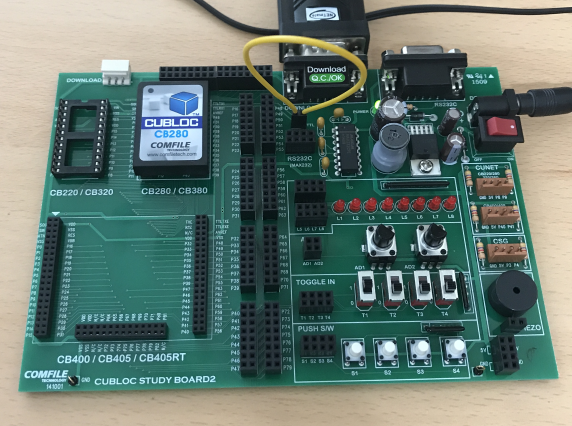 Const Device = CB280 Dim A As Byte Dim B As Byte Opencom 1,19200,3,50,50 Wait 500 For A=&h41 To &h5a Put 1,A,1 '채널1으로 1바이트를 송신 Wait 10 '버퍼로 들어오는시간을 기다려줍니다. B = Get(1,1) '채널1로부터 1바이트를 수신. Debug B Wait 100 Next
