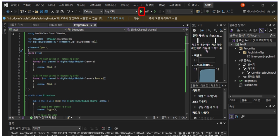 개발PC 환경 설정을 마쳤다면, Visual Studio를 이용하여 프로그램(App)를 만드는 방법과 CFHEADER library(Nuget Packages) 설치 방법을 설명합니다.