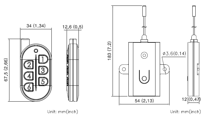 산업용 무선 RF 6키 리모콘 모듈입니다. 송신부의 보턴중에서 하나를 누르면, 수신부의 해당 핀에서 HIGH (5V)가 출력됩니다.