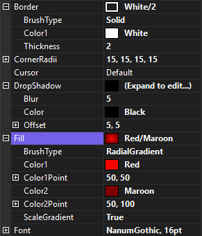 The jLabel control is analogous the .NET Framework's Label, but has a much more rich appearance, employing jControls NF4's fill, border, corner radii, drop shadow, and text features.