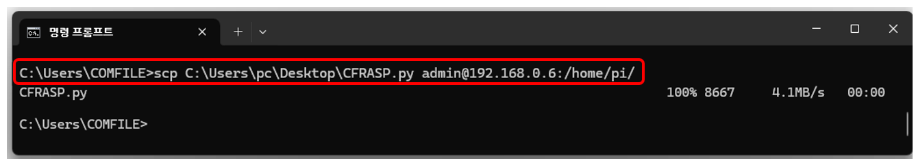 1. Download the CFRASP.py file and save it in the folder where your Modular Pi program will execute. If your SSH Remote environment is configured, you can transfer the file from your development PC to the Raspberry Pi as shown below: