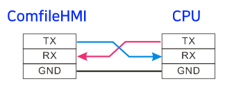 CPU모듈에 있는 RS232C와 ComfileHMI를 아래 그림처럼 연결하세요.
